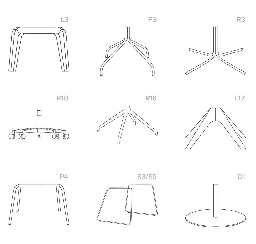 • 9 diseños de bases disponibles a elección en acabado madera, cromo, negro o pulido.