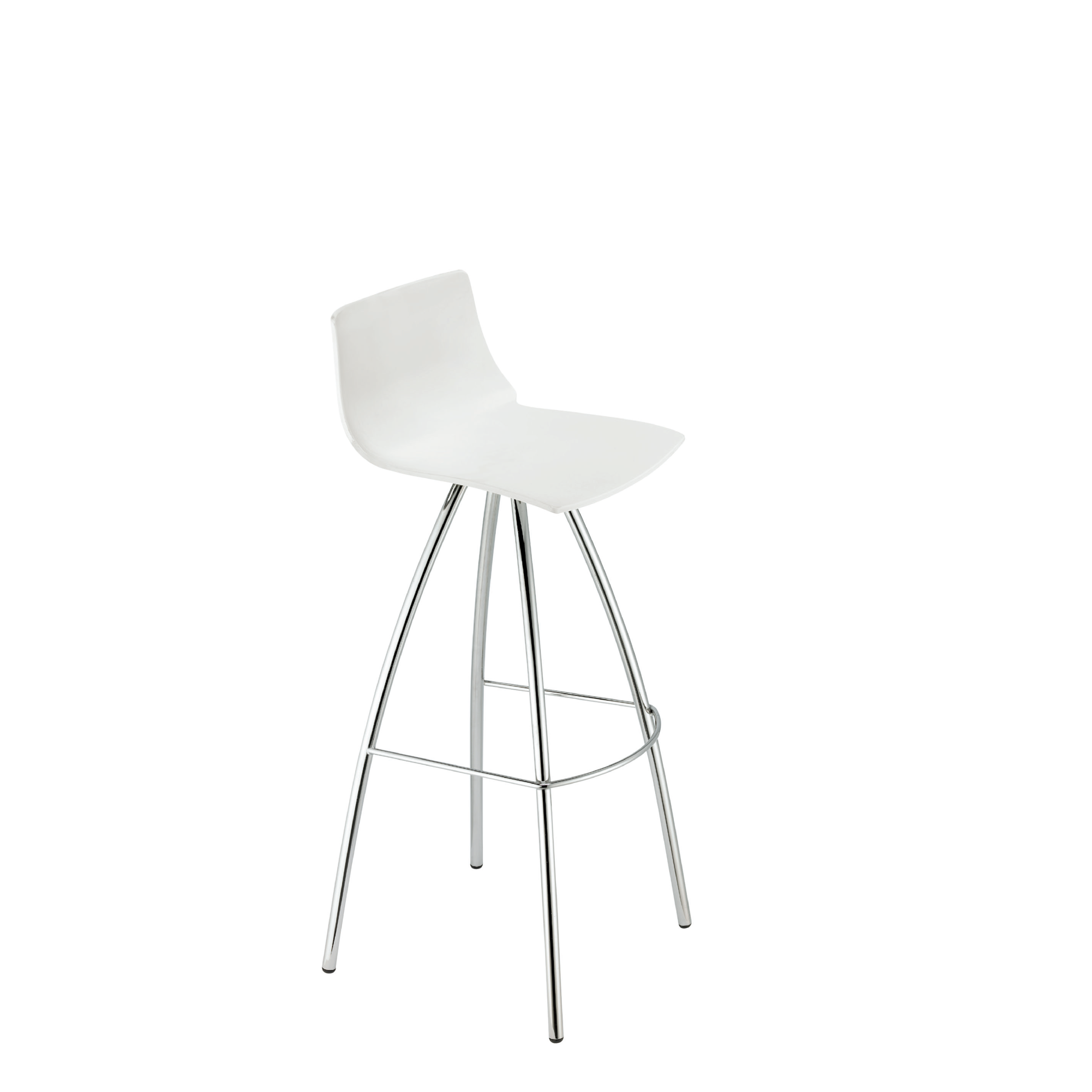- Banco con estructura de acero cromado. Asiento en tecnopolímero.