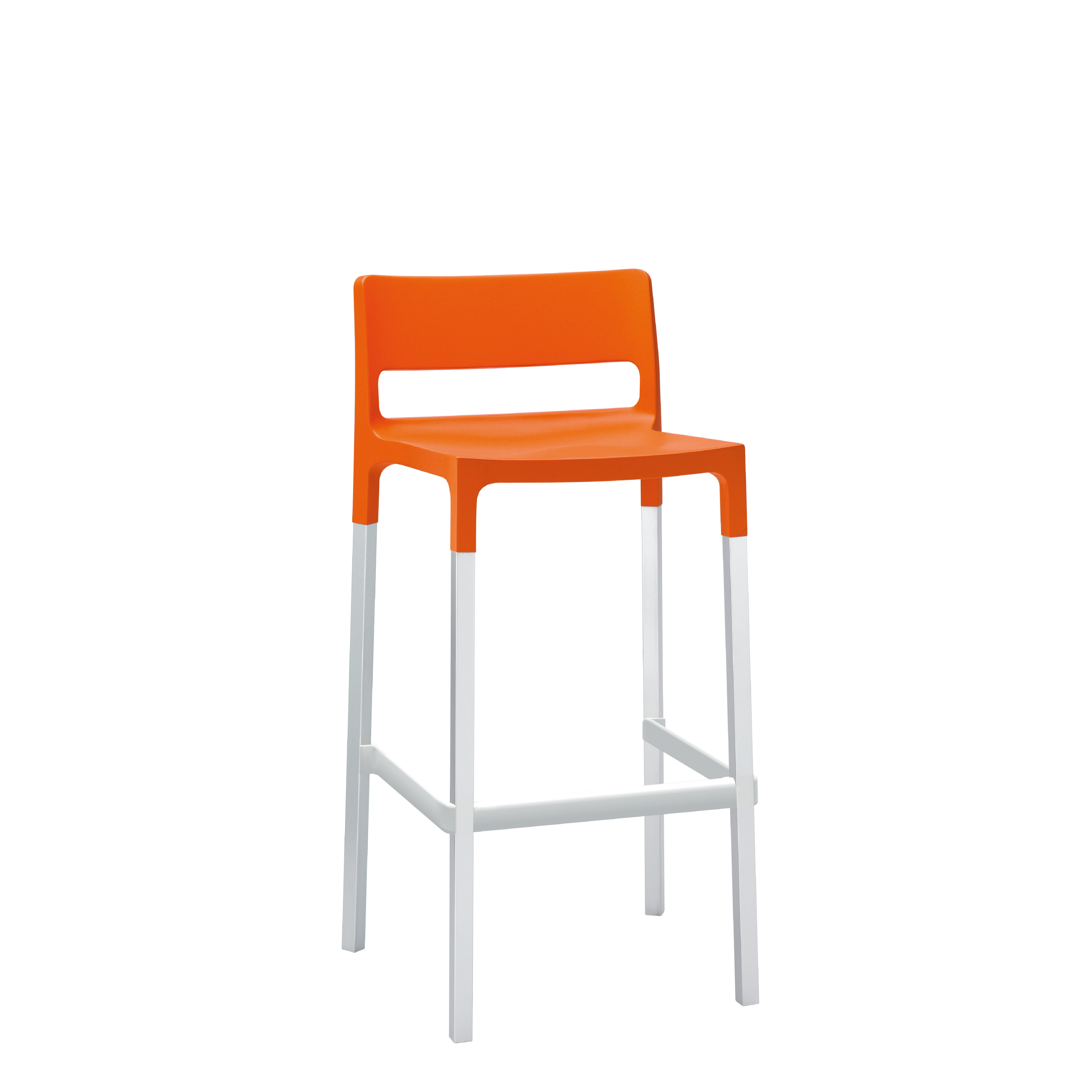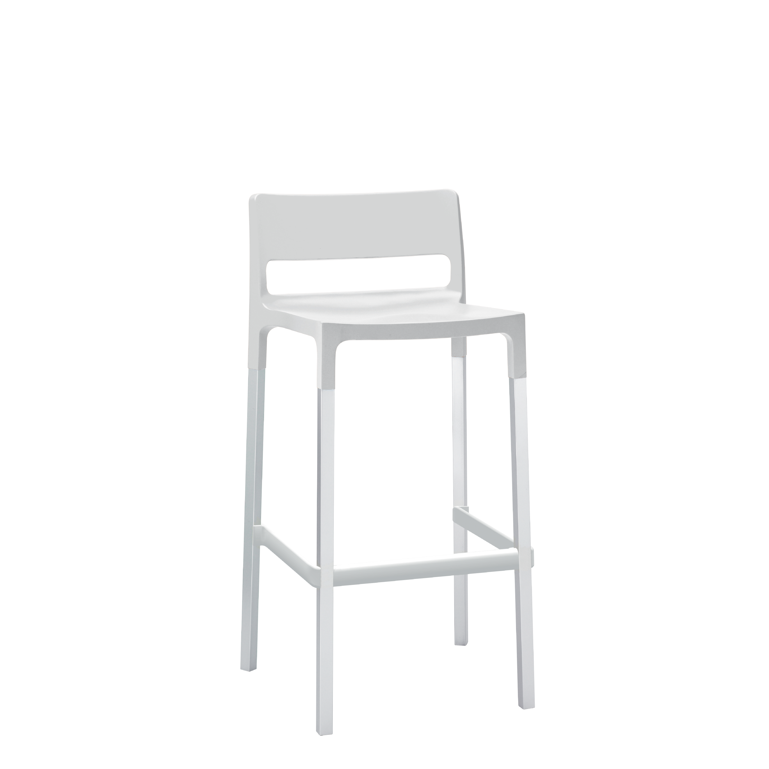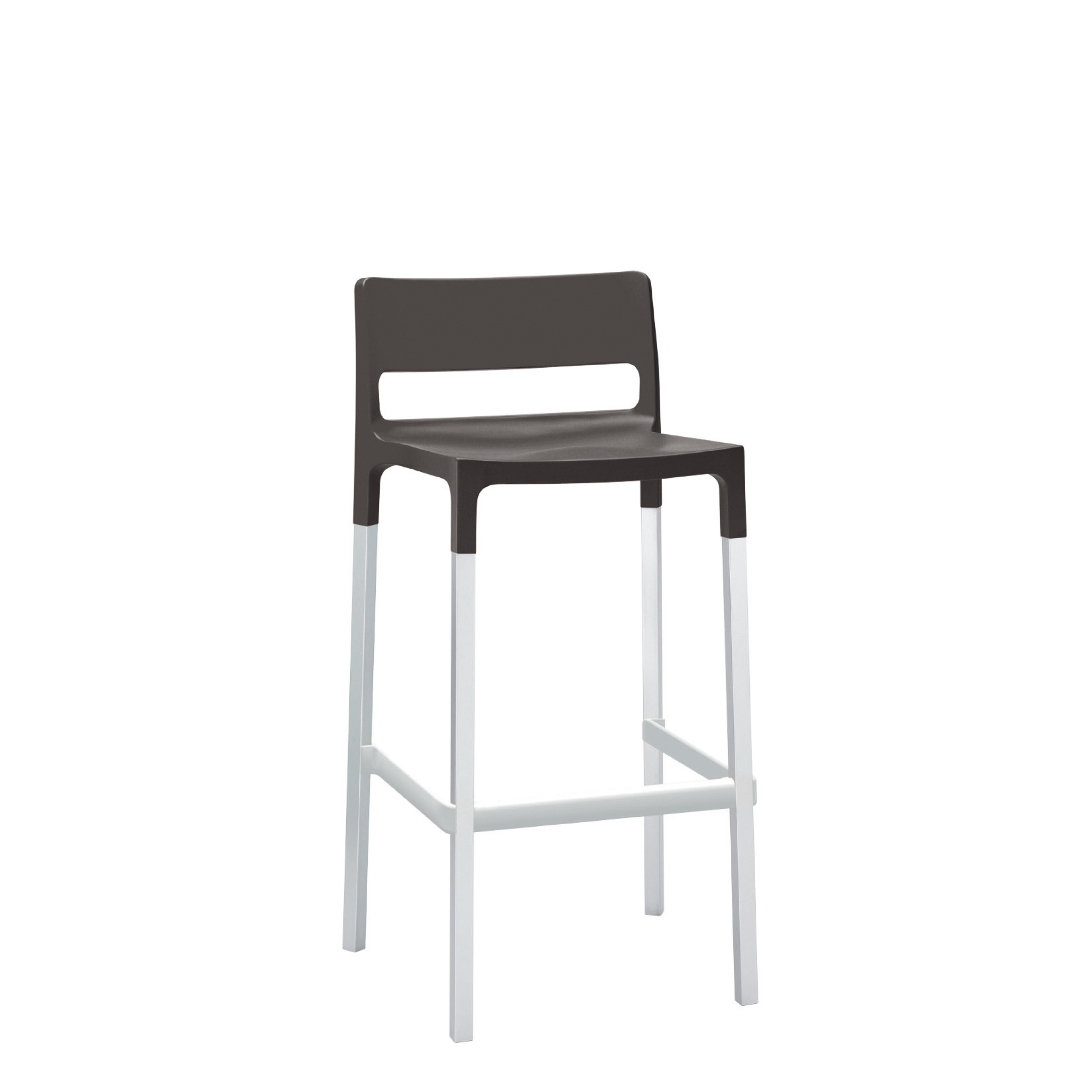 - Comodidad y resistencia en un banco con asiento en tecnopolímero reciclable reforzado con fibra de vidrio y descansa pies. Base de madera para uso interno y de aluminio para uso externo e interno.