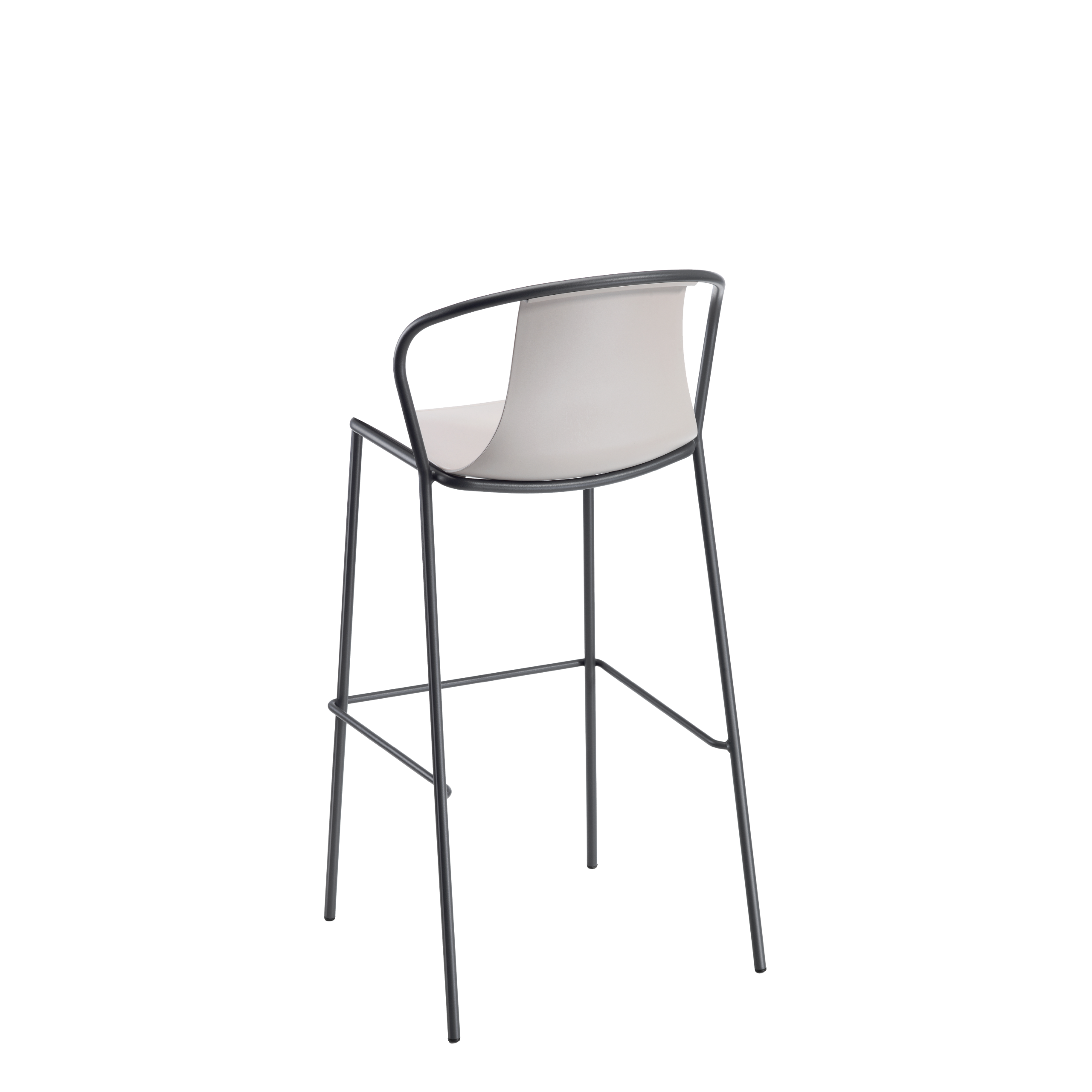 - Kasia, con su silueta esbelta, realza delicadamente la idea de comodidad y hospitalidad, incluso para ambientes exteriores. La estructura metálica, tratada para la resistencia a los agentes atmosféricos, y la superficie del respaldo en tecnopolímero, amplifican el confort.